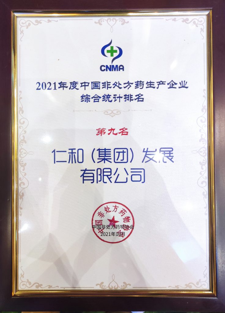 仁和集團榮獲2021年度中國非處方藥生產企業綜合統計排名第九名 發布時間: 2021年10月20日 15:08:48 閱讀量: 12,231 下一篇:仁和集團榮膺“新中國成立70周年醫藥行業標桿企業”上一篇:仁和集團再次榮登中國醫藥商業百強企業