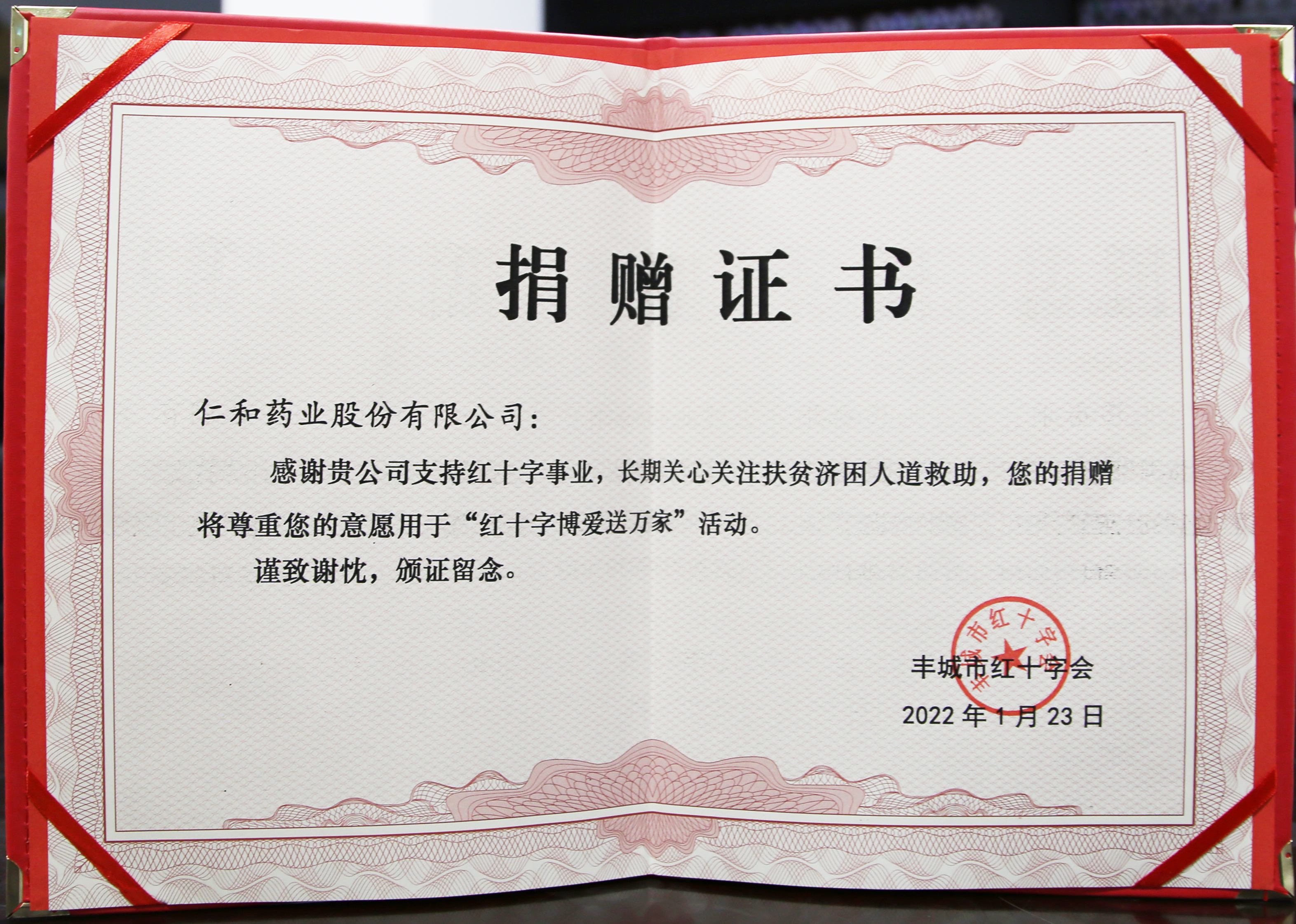 仁和藥業股份有限公司獲豐城市“紅十字博愛送萬家”活動捐贈證書 發布時間: 2023年04月23日 11:39:47 閱讀量: 16,430 下一篇:仁和集團再次位居宜春民營企業百強榜首上一篇:仁和集團獲樟樹市社會福利院愛心證書