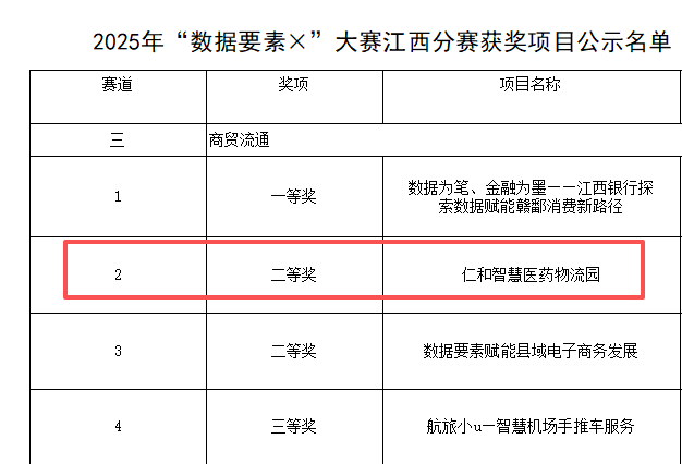 以數(shù)字賦能打造智慧醫(yī)藥物流領(lǐng)域新標桿 ——仁和智慧醫(yī)藥物流園項目榮獲2025“數(shù)據(jù)要素×”大賽江西省二等獎
