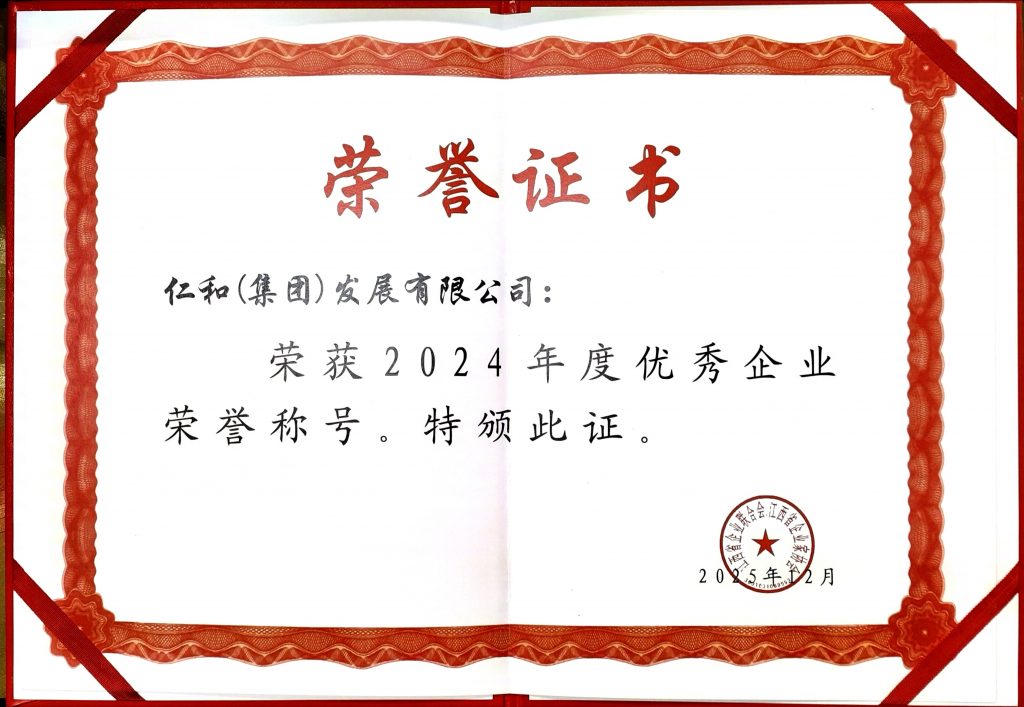 仁和集團榮獲2024年度優秀企業榮譽稱號