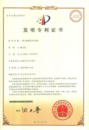 一種口腔消毒衛生產品發明專利證書