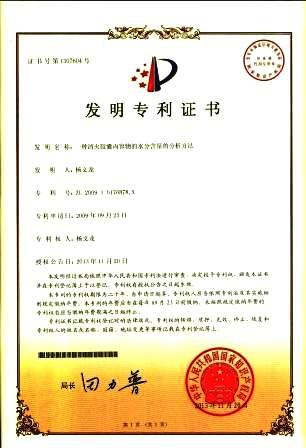 一種清火膠囊內(nèi)容物的水分含量的分析方法發(fā)明專利證書 發(fā)布時間: 2019年12月18日 11:51:26 閱讀量: 11,336 下一篇:一種前列金丹膠囊的分析方法發(fā)明專利證書上一篇:一種濕毒清片的分析方法發(fā)明專利證書