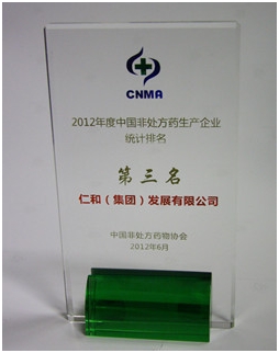 會議期間公布了2012年度中國OTC產業的相關統計排名。仁和集團位列2012年度中國非處方藥物生產企業第三名,仁和牌“優卡丹”位列2012年度中國非處方藥化學藥兒科類產品第一名。